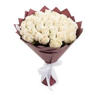 Состав: белая одноголовая роза (Россия, 60-70 см.) - 35 шт.