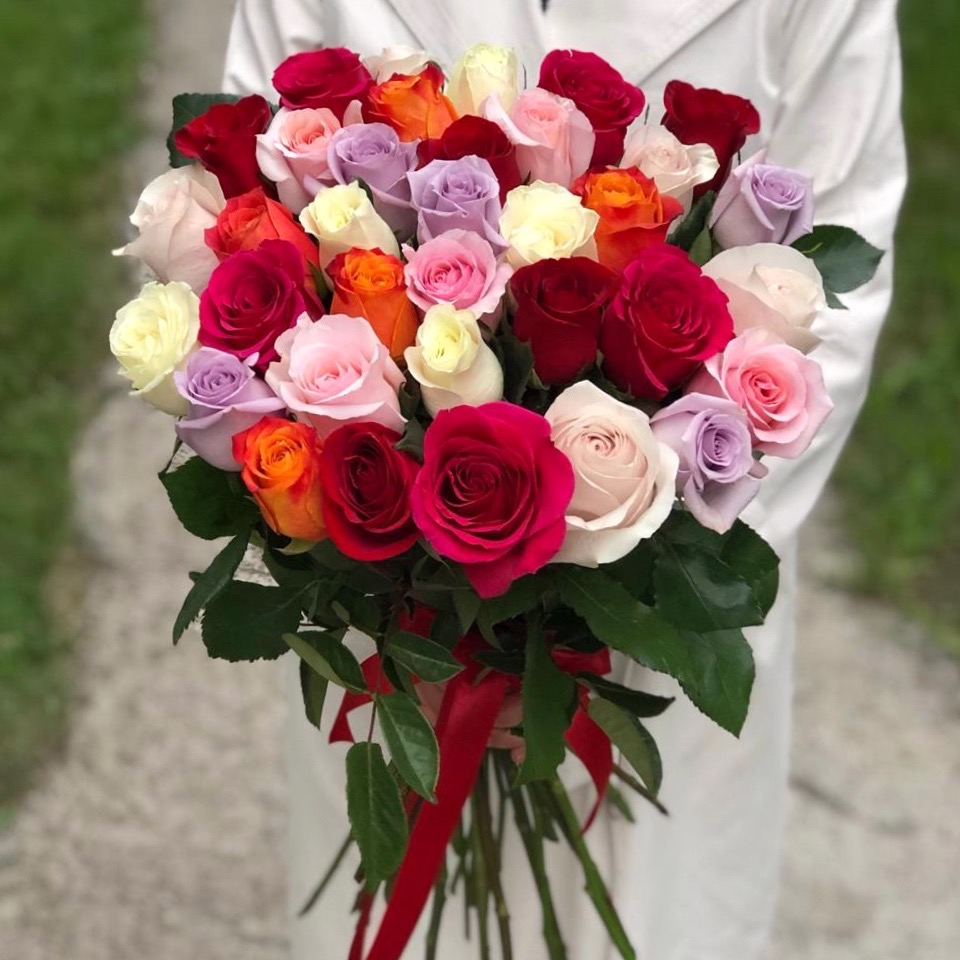 Состав: разноцвеиная одноголовая роза (60-70 см.) - 35 шт.