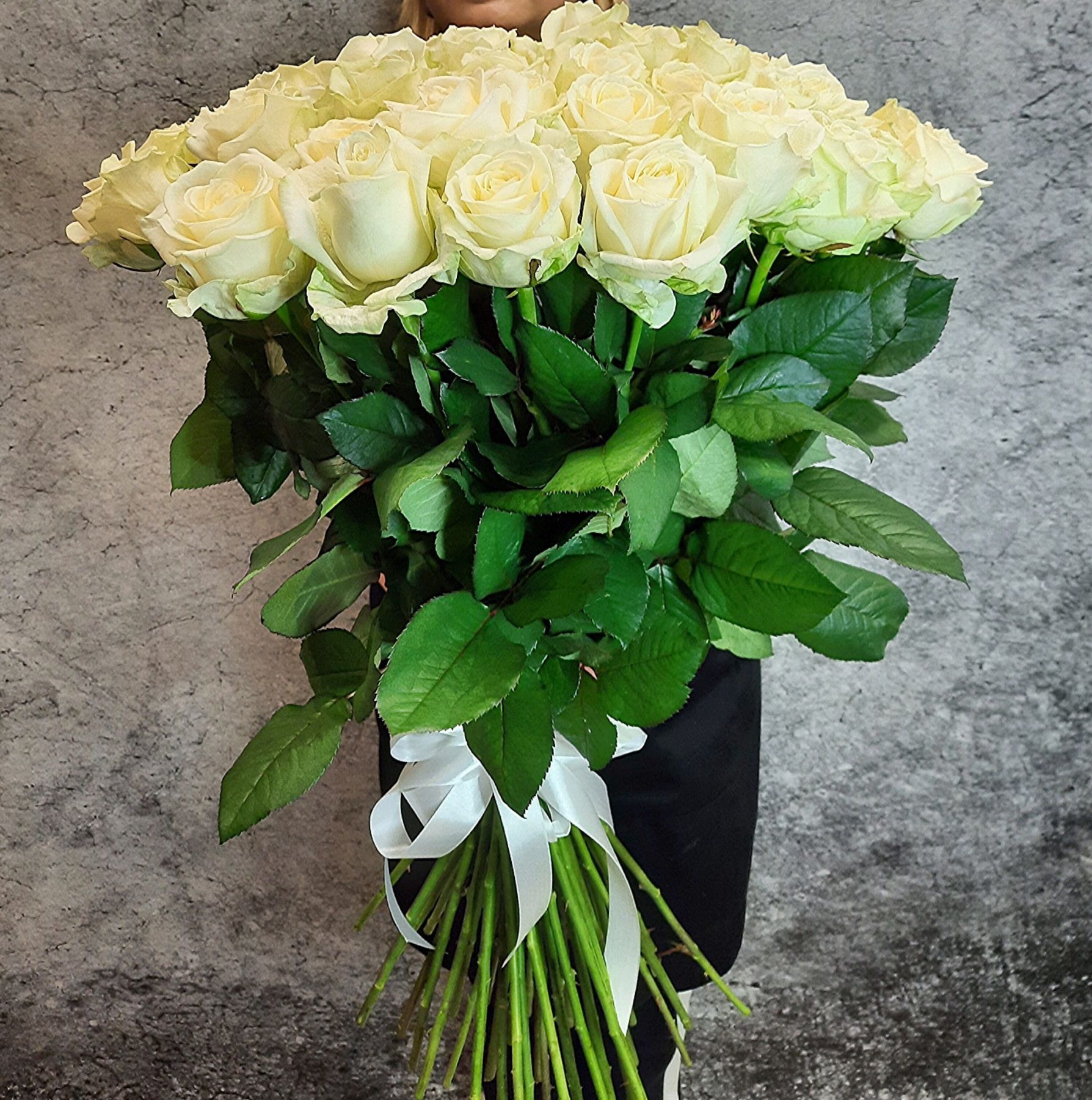 Состав: белая одноголовая роза (60-70 см.) - 51 шт.