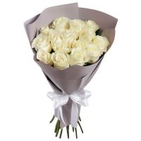 Состав: белая одноголовая роза (60-70 см.) - 15 шт.