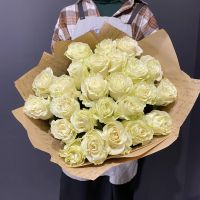 Состав: белая одноголовая роза (60-70 см.) - 25 шт.