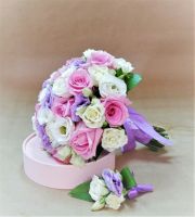 роза - 15шт, эустома - 2шт, роза кустовая - 2шт, рускус