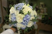 гортензия, роза, эустома, зелень